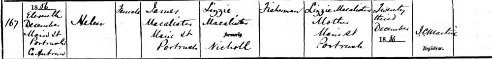 Helen MCALISTER, 1886, age 0